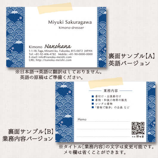 *裏面デザインは2枚目の画像をご覧下さい。英語バージョンと業務内容の2種類があります。